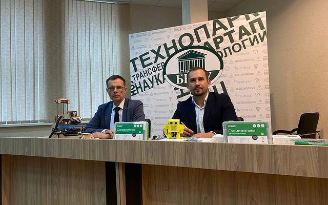 Балбуцкий Сергей Викторович, представитель компании РОББО в РБ, директор РОББО Клуба, директор ИОЦР БНТУ, и Авсиевич Андрей Михайлович, декан ФИТР БНТУ рассказали о работе «Инновационно-образовательного центра по робототехнике БНТУ» и сети Инновационных Инженерных классов.